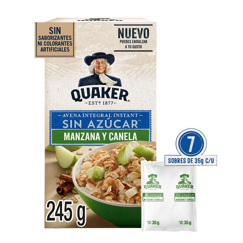 Avena Integral Sabor Manzana Y Canela Sin Azúcar Quaker Instantáneo 245g