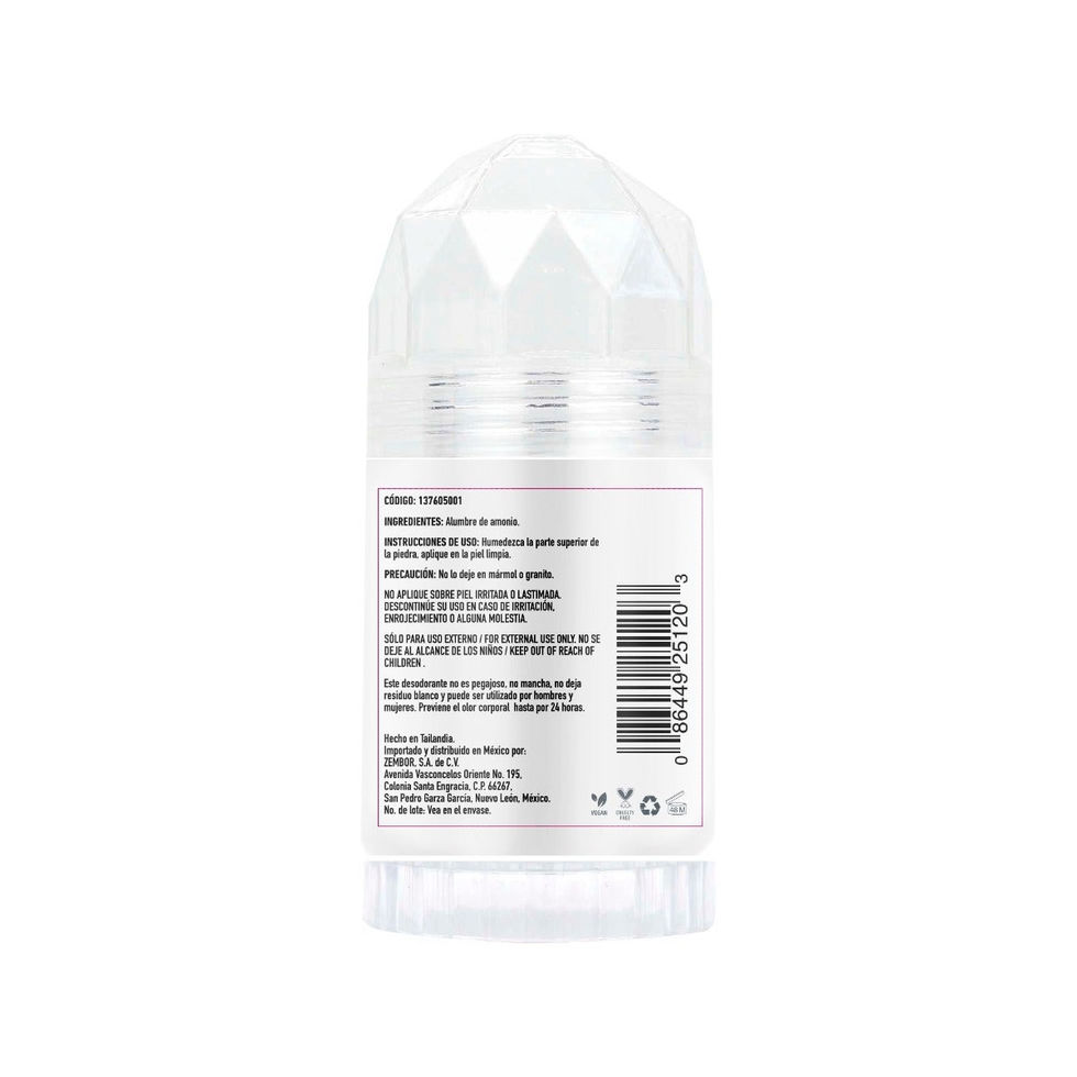 El Desodorante Corporal es un producto hecho de sales minerales que ayuda a neutralizar las bacterias que causan el mal olor corporal. No es un antitranspirante, por lo que permite que el cuerpo sude de manera natural sin bloquear los poros.