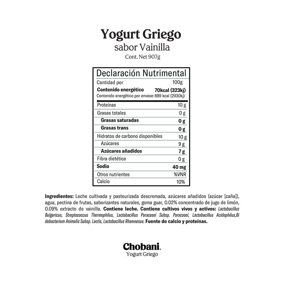 Yoghurt Chobani Batido Griego Vainilla 907g